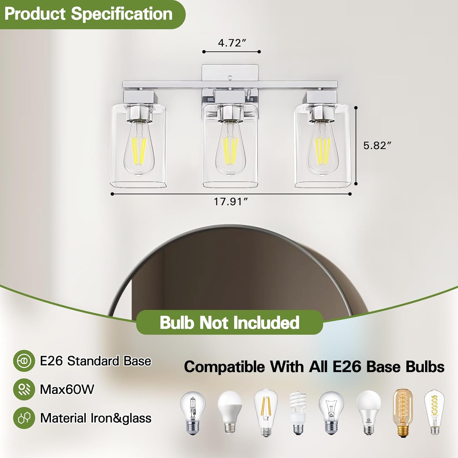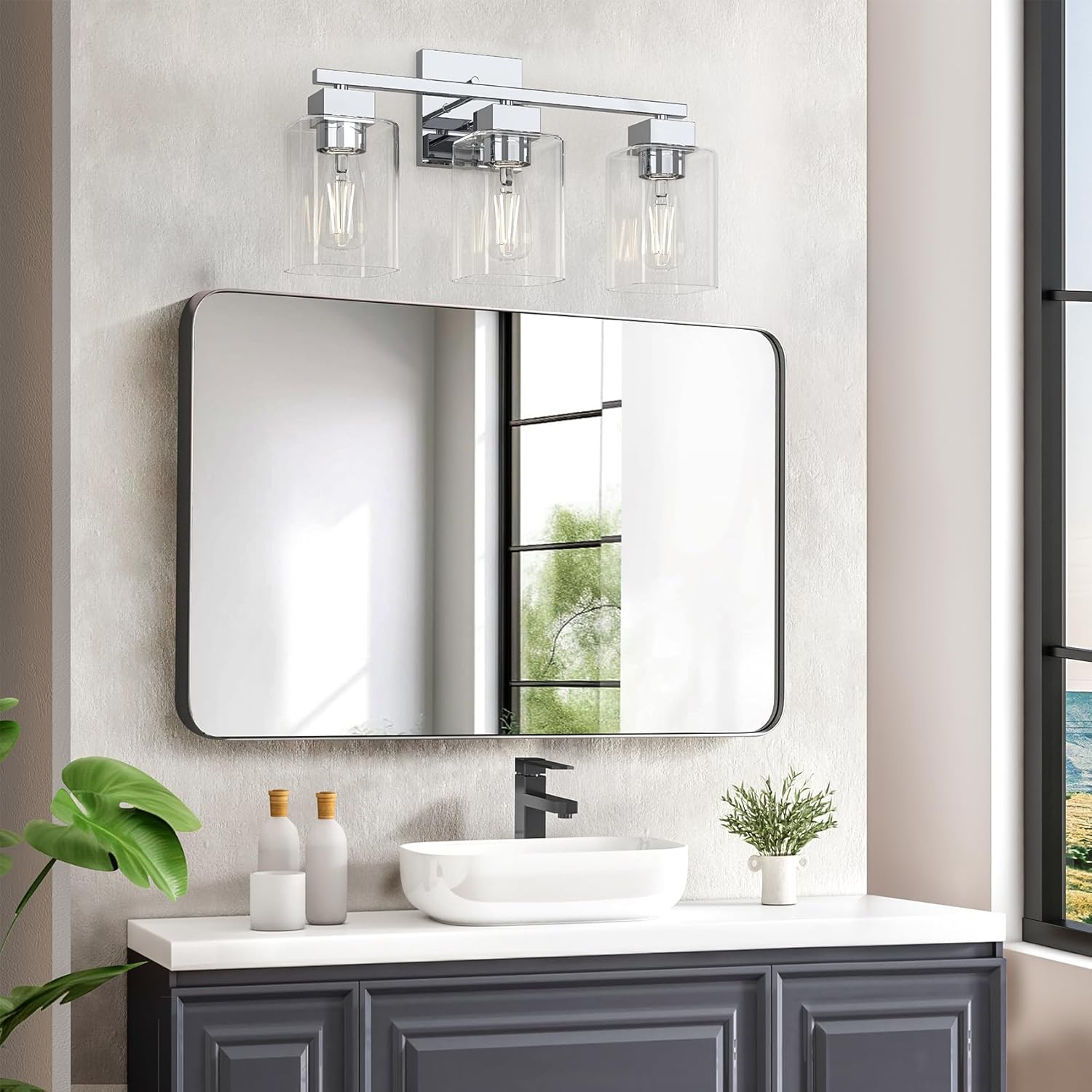 Espird Chrome Bathroom Vanity Light – 3 Light Bathroom Light Fixture Square Design & UL Certification, Bath Room Lighting Fixtures Over Mirror, Modern Vanity Lighting Fixture for Living Room