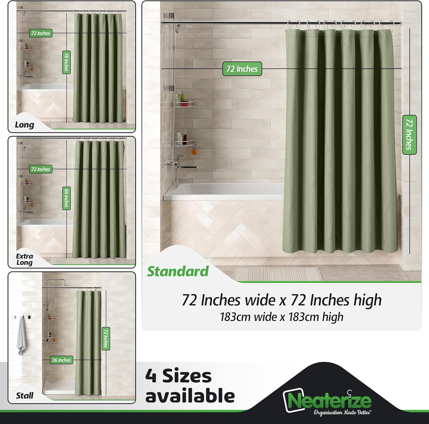 Shower Curtain Sage Green – Hotel Style Sage Green Shower Curtains for Bathroom with Waffle Design, 72×72 Inches – Fabric Shower Curtain – Cortinas de Baño Elegantes