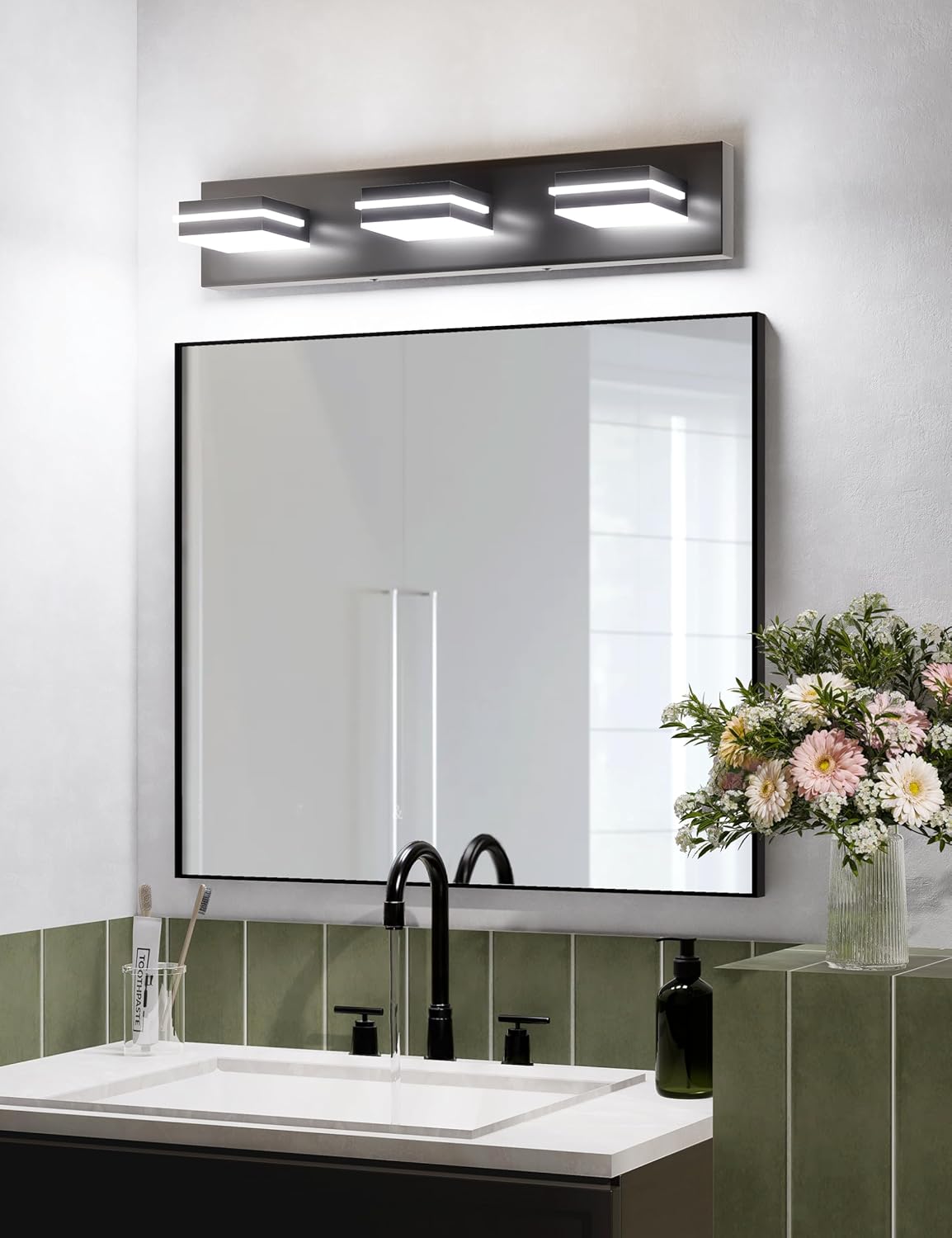 VOLISUN Modern Bathroom Vanity Light Fixtures (3-Light, 24-Inch), Matte Black LED Bathroom Lighting Fixtures Over Mirror, 360°Rotable Head, LED Vanity Lights for Bathrooms (Cool White 6000K)