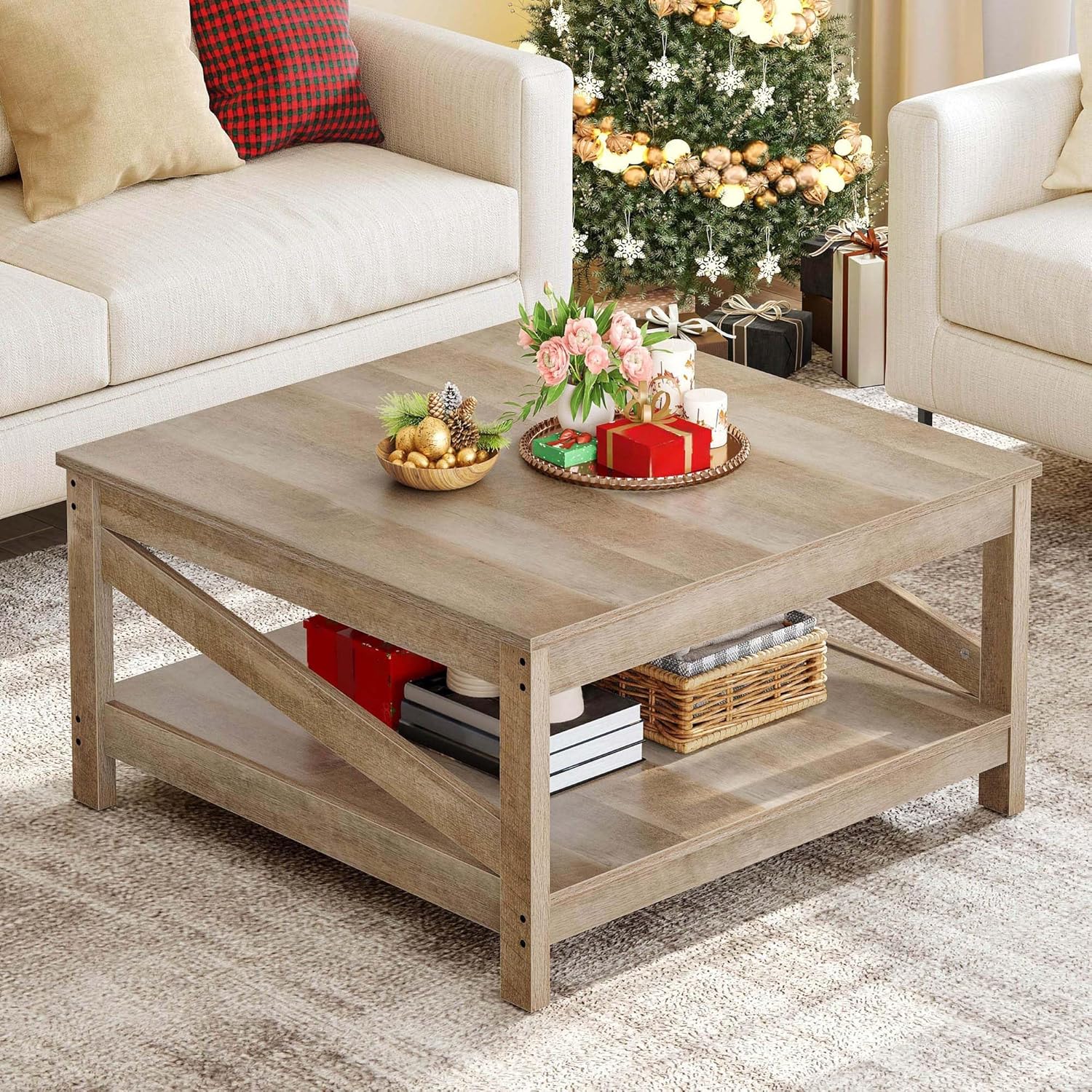 Introducing the YITAHOME Square Coffee Table with Storage, a stylish and functional addition to your living room. This 2-tier farmhouse coffee table combines modern design with a touch of rustic charm, making it the perfect centerpiece for any space.